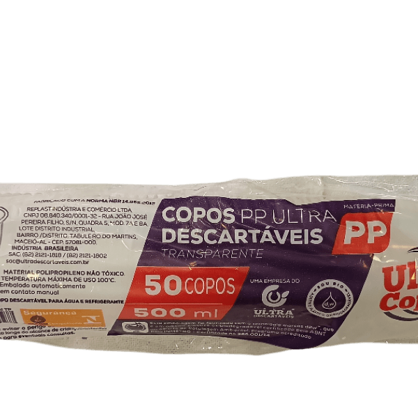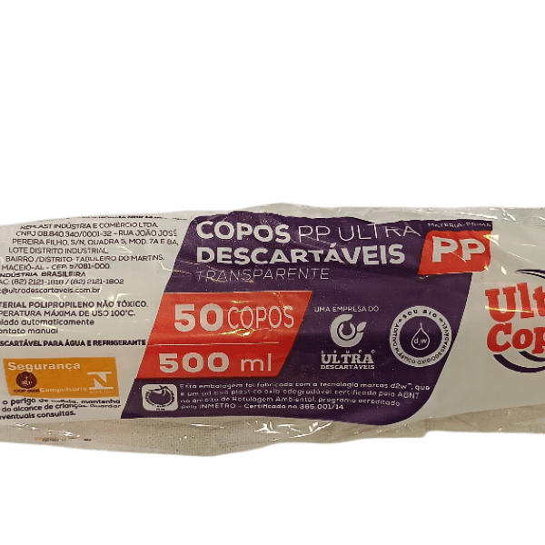 Copo Descartável Transparente 500ml – Pacote com 50 Unidades
